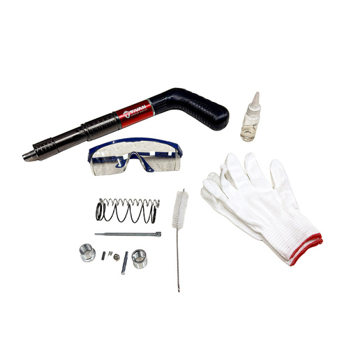 اقلام همراهعینک ایمنی، برس تمیز کاری، میخ چاشنی، جعبه پلاستیکی، دستکش، روغن